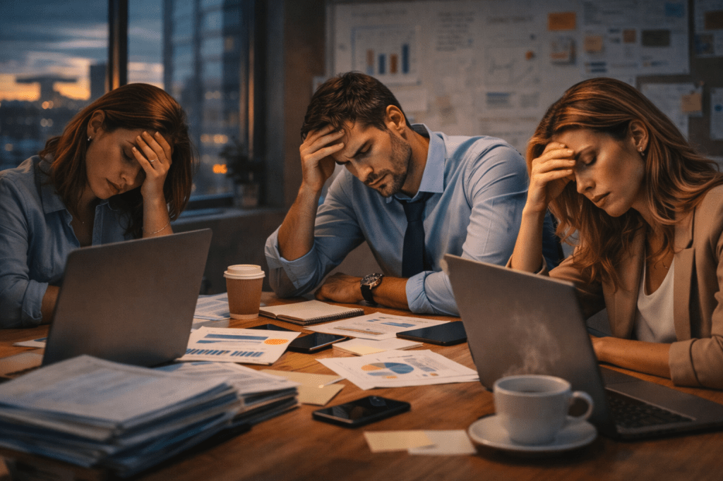 Empresas sentem isso quando têm equipes tecnicamente boas, mas emocionalmente desconectadas. Pessoas sentem isso quando continuam performando, mas já não conseguem explicar o porquê.